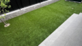 砂の追加、防草シート施工、人工芝施工で1日で完成しました。庭全体と同じ種類の人工芝を使用したことで統一感と、景観共にワンランクアップいたしました♪