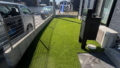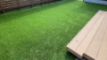 施工前のお庭写真になります。ご自身で防草シートを敷設されておりました。見た目景観UP&雑草対策の為人工芝敷設をご希望でした。
