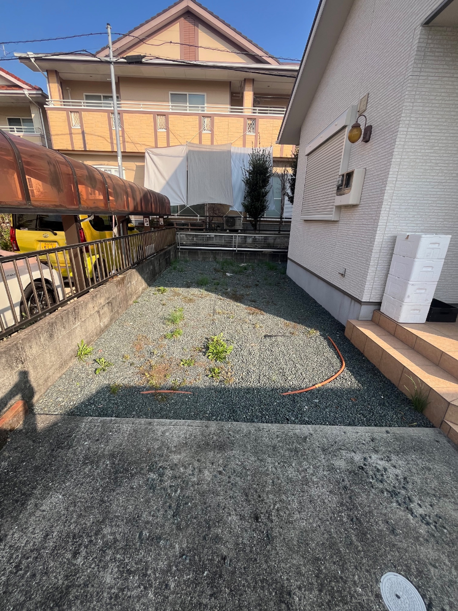 施工前のお写真です。砂利から人工芝のお庭へリフォーム!!!景観も良くしたいとの事でお問い合わせいただきました♪