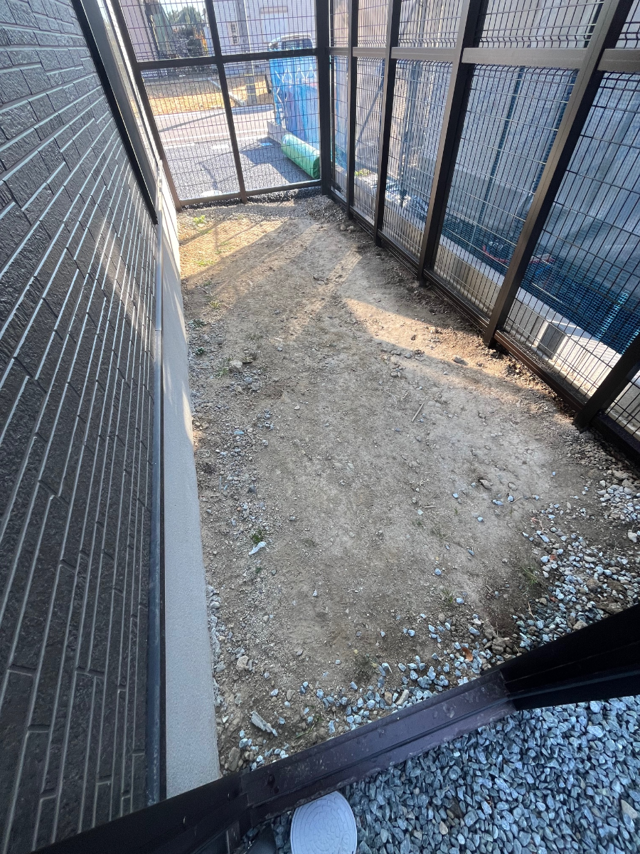 施工前のお写真です。新築のお庭に猫ちゃん達の遊びスペースに人工芝を導入したいとのご要望でした♪